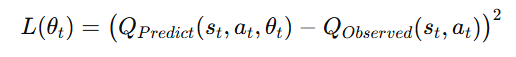예측값 QPredict(s,a,θt): 신경망이 현재 시점 t에서 특정 상태 s와 행동 a에 대해 산출한 기대 보상 추정치.
