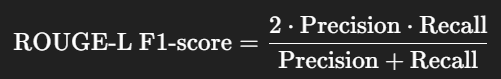 ROUGE-L 계산 방법ROUGE-L 점수는 정밀도와 재현율을 계산한 후, 이를 F1-score로 합산하는 방식입니다.