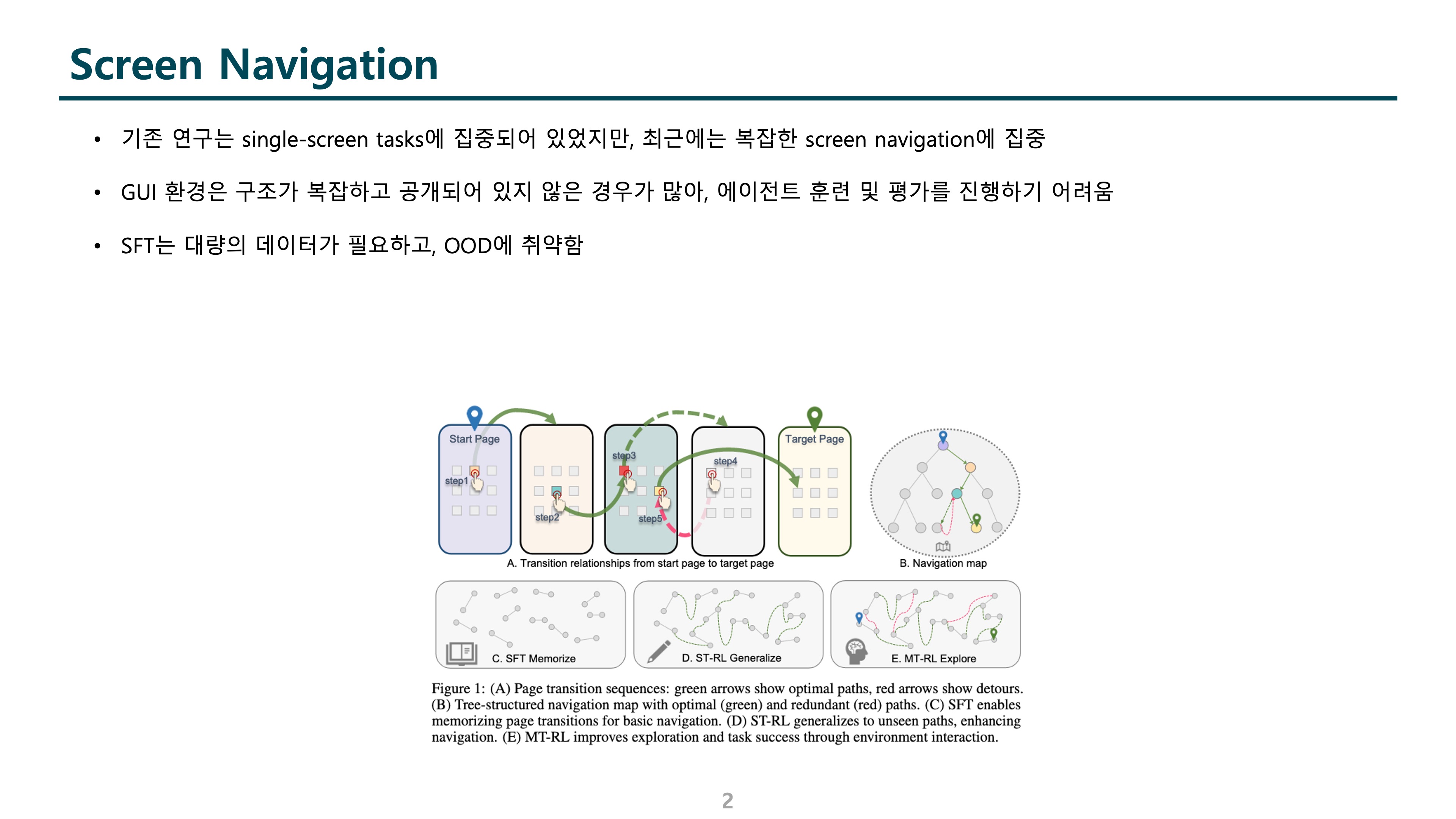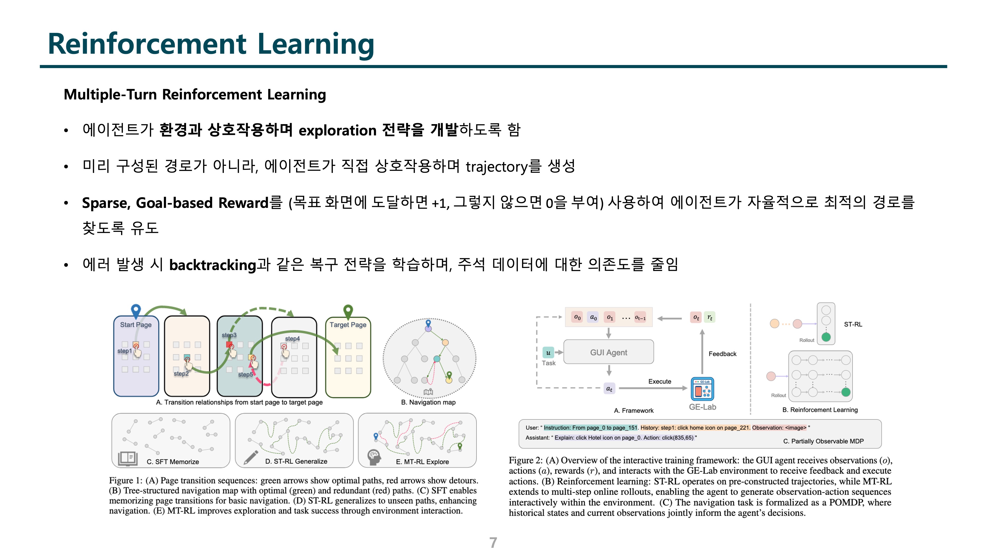 Multi-Modal [2025-2] 백승우 - GUI Exploration Lab: Enhancing Screen Navigation in Agents via Multi-Turn Reinforcement Learning BaekDaBang 2025. 11. 26. 17:15 GUI Exploration Lab: Enhancing Screen Navigation in Agents via... With the rapid development of Large Vision Language Models, the focus of Graphical User Interface (GUI) agent tasks shifts from single-screen tasks to complex screen navigation challenges. However... openreview.net