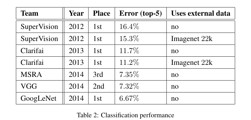 7. ILSVRC 2014 Classification Challenge Setup and Results