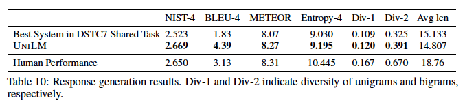- UniLM이 다른 모델들에 비해 뛰어난 결과를 보이는 것을 확인할 수 있음