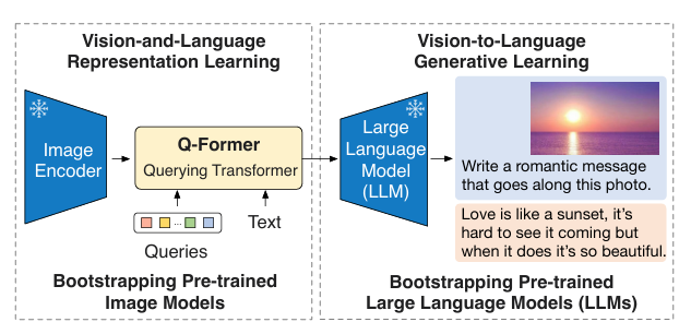 계산 효율적인 VLP 프레임워크인 BLIP-2를 제안한다. - BLIP-2의 핵심 구성 요소는 Q-Former (Querying Transformer)이다.
