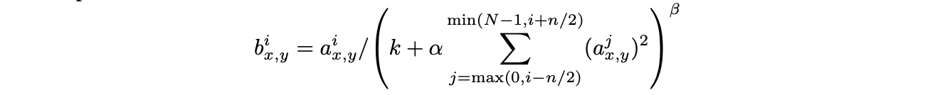 - 현재 10번째 커널이라면, 8번째 커널부터 12번째 커널까지의 제곱합으로 나누며 정규화를 진행