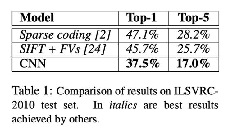 - test dataset이 라벨링된 ILSVRC-2010 데이터를 주로 사용