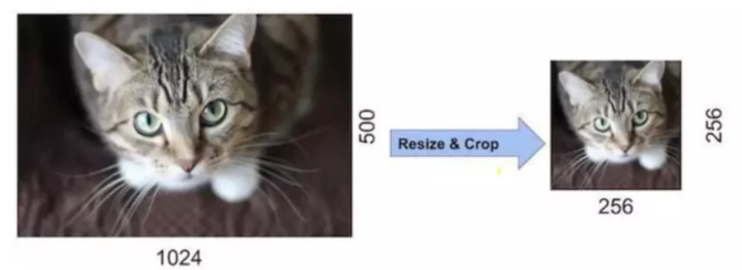 - 256 × 256의 고정 해상도로 down sampling을 수행