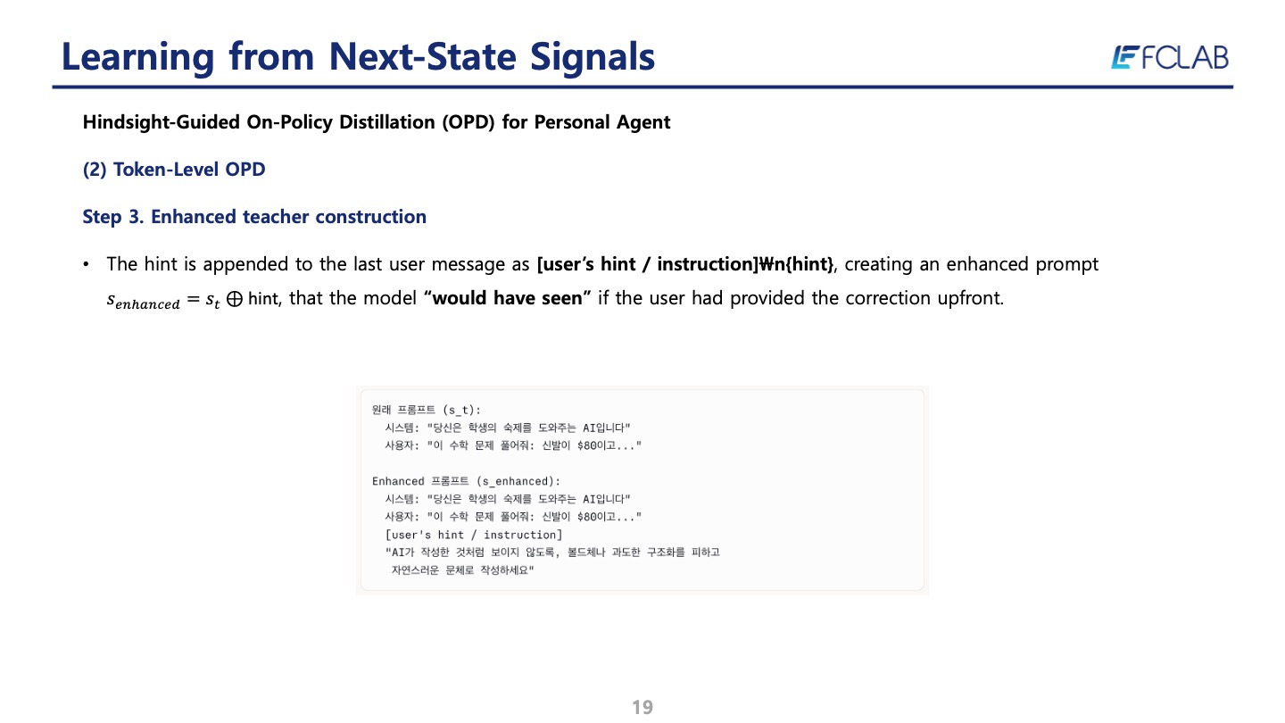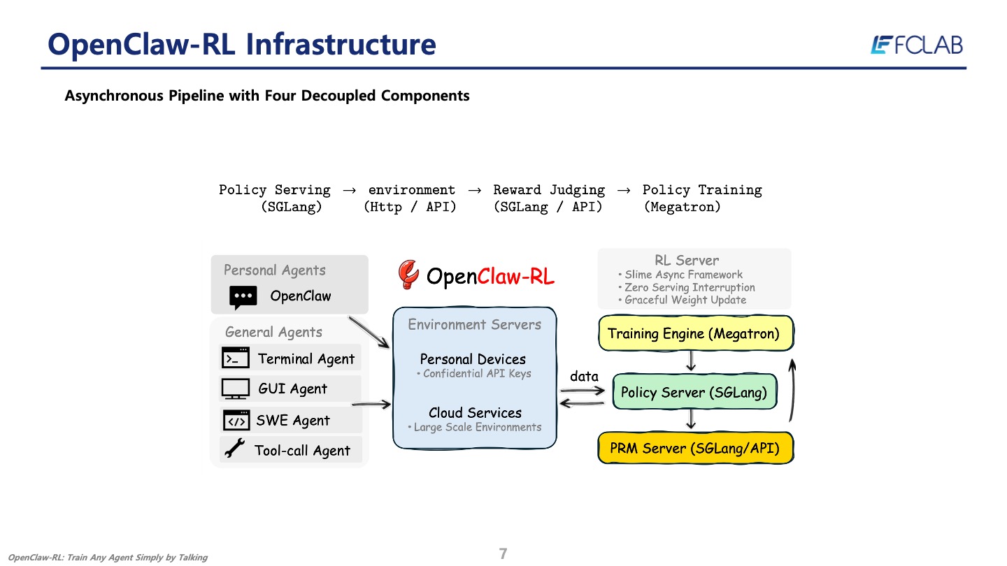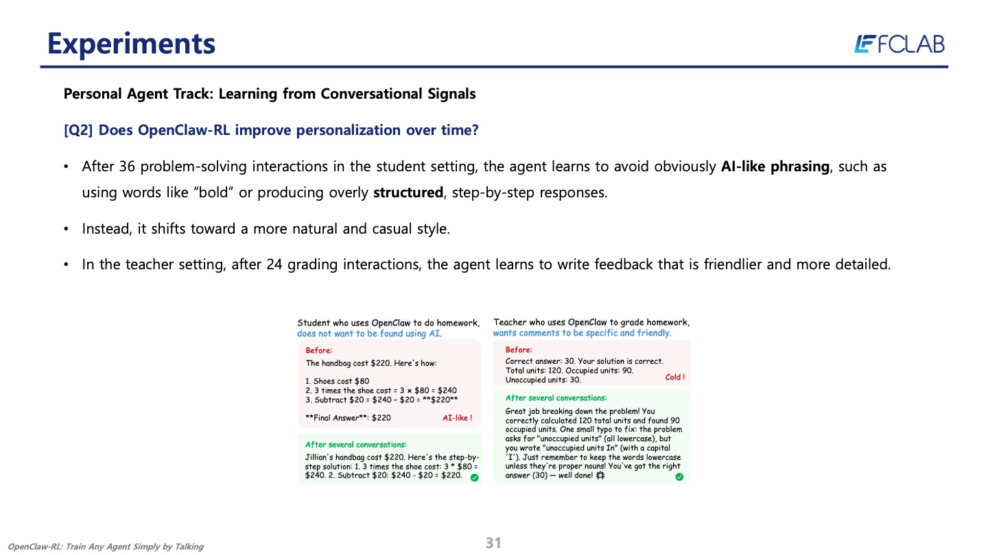 NLP [2026-1] 백승우 - OpenClaw-RL: Train Any Agent Simply by Talking BaekDaBang 2026. 3. 17. 20:57 OpenClaw-RL: Train Any Agent Simply by Talking Every agent interaction generates a next-state signal, namely the user reply, tool output, terminal or GUI state change that follows each action, yet no existing agentic RL system recovers it as a live, online learning source. We present OpenClaw-RL, a fra arxiv.org