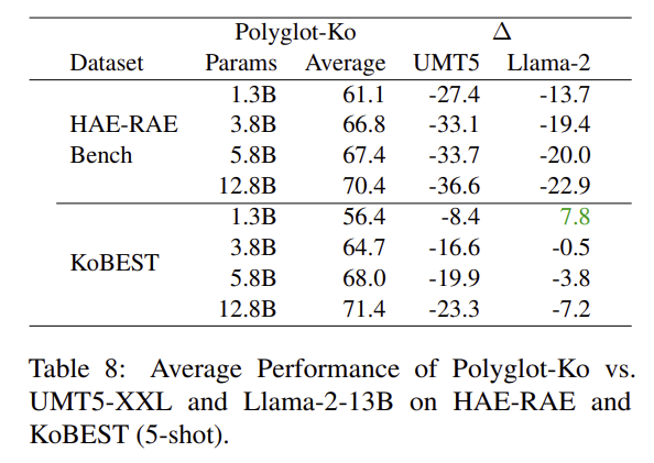 - Korean-focused models: Polyglot-ko (1.3B/3.8B/5.8B/12.8B)