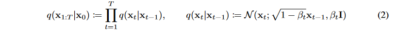 (1) Forward(Diffusion) Process : $q(x_t|x_{t-1})$