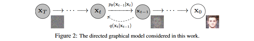 - Network를 학습하고 나면, gaussian noise에서 시작해서 순차적으로 denoising하는 것이 가능 (by parameterized markov chain)