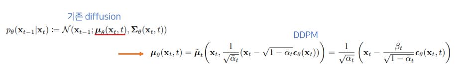 $\mu _\theta$ 를 바로 구하지 않고, residual $\epsilon _\theta$ 만 구해 정확도를 높였다.