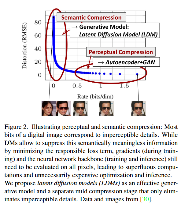 논문의 저자들은 LDM이 기존의 오토인코더와 GAN에 비해 훨씬 효율적인 압축을 제공하며, 동시에 훈련 및 추론 단계에서 필요 이상의 계산을 줄일 수 있음을 주장합니다. 이러한 특성은 LDM을 효율적인 생성 모델로 만들고, 불필요한 세부 정보를 제거하는 압축 단계와 결합하여 고품질의 이미지를 생성할 수 있는 능력을 제공합니다.