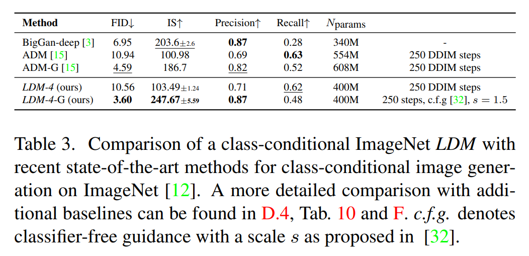 저해상도 이미지에 직접 조건을 부여하여 LDM을 훈련할 수 있습니다. 이 모델은 SR3의 성능을 능가하며, FID 점수에서 우수하지만 IS에서는 SR3가 더 높은 점수를 받습니다