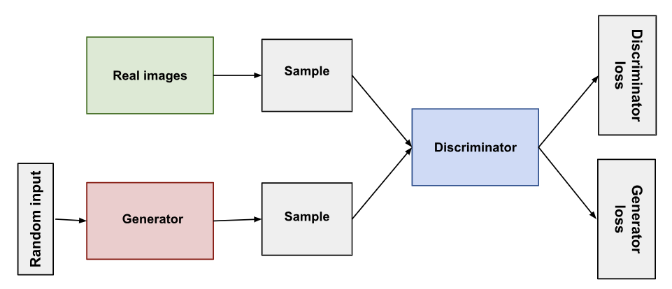 ② Discriminative model D: 샘플이 G가 아닌 training data에서 왔을 확률을 추정하는 판별 모델 - G와 D가 multilayer perceptrons로 정의되는 경우, 전체 시스템이 backpropagation 방식으로 학습될 수 있음