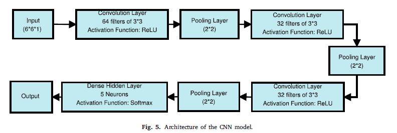 2D CNN model에 입력하기 위해 6 × 6 matrix로 변형하여, 6 x 6 픽셀로 입력된다. - UNSW-NB 데이터셋은 38개의 features를 포함하므로 11 픽셀의 패딩을 사용하여 7 × 7 matrix로 변형한다.