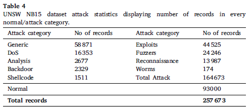 - UNSW-NB15 데이터셋은 44개의 feature로 구성되고, 9개의 공격 클래스로 구분한다.