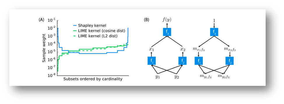 (B) 심층신경망과 같은 합성곱 모델은 간단한 구성요소로 이루어져, 구성요소의 shapley 값에 대한 분석이 주어지면 전체 모델에 대한 근사치를 DeepLIFT의 역전파와 같은 방식을 사용하여 만들 수 있음