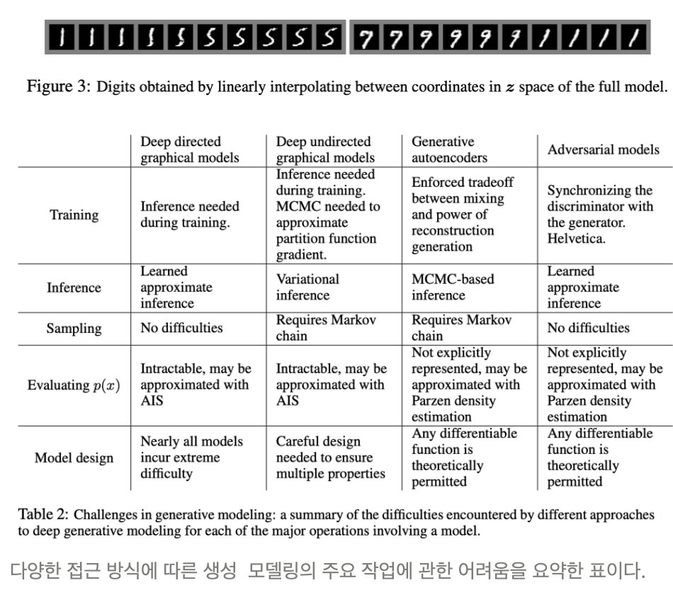 • maximum likelihood estimation과 관련된 많은 부정확한 확률 계산을 근사하는 것에 대한 어려움과 linear units의 장점 활용에 어려움이 있었음 ⇒ 본 논문에서는 이러한 어려움을 개선할 수 있는 새로운 generative model 추정 절차(adversarial nets framework)를 제안