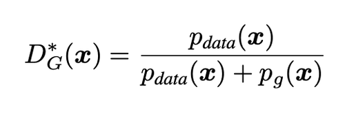 • Proposition 1. $G$는 고정되어 있고, optimal discriminator $D$가 다음과 같을 때