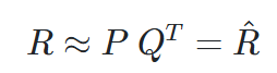 - 즉 Rating Matrix를 P와 Q로 분해하여 R과 최대한 유사한 R^을 추론 하는 것이다.