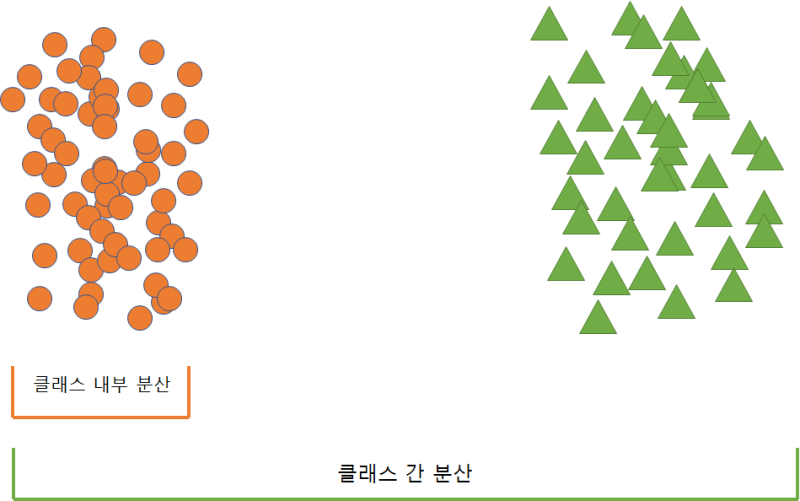 특정 공간상에서 클래스 분리를 최대화하는 축을 찾기 위해 클래스 간 분산은 최대한 크게, 클래스 내 분산은 최대한 작게 만들어 내는 축을 찾아서 축소시킵니다.