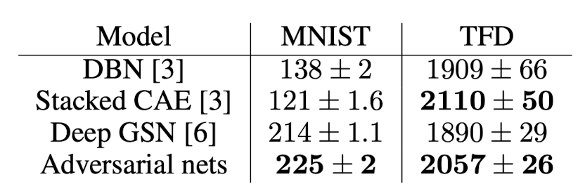 1. 타 모델과의 성능 비교 (Parzen window-based log-likelihood estimates)